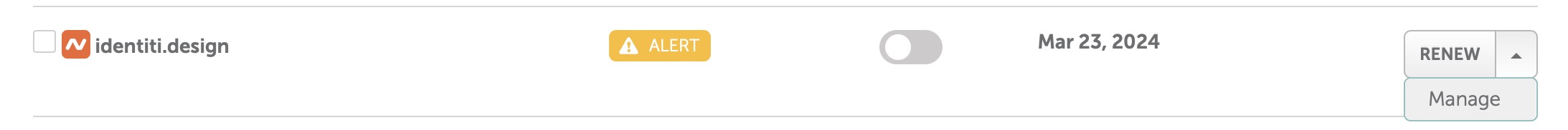 2. Click on Manage next to your domain