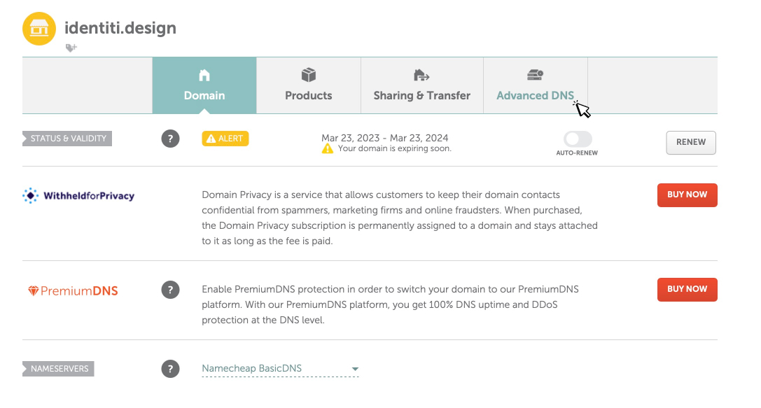 3. Click on Advanced DNS