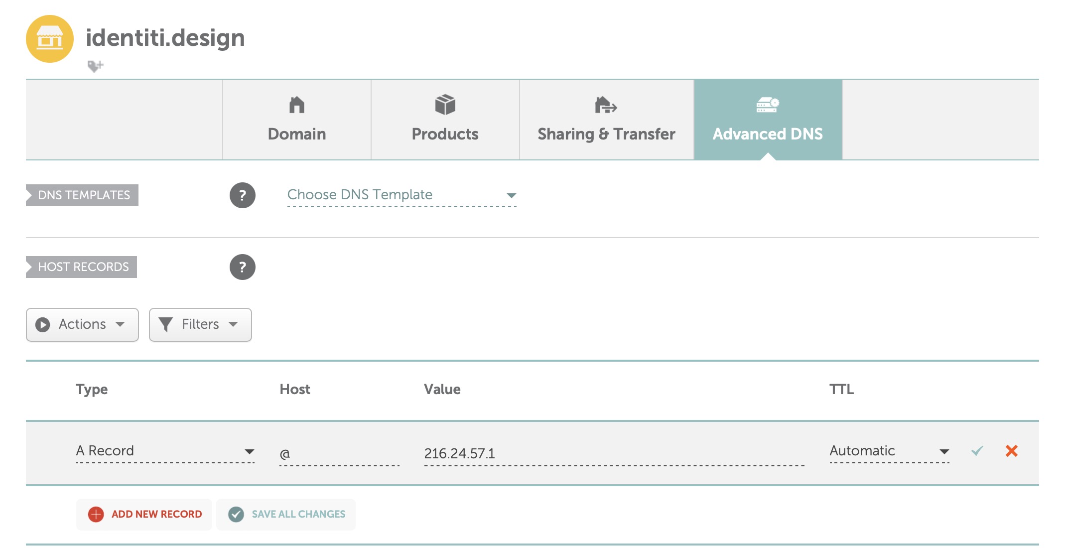 4. Configure the DNS A Record: