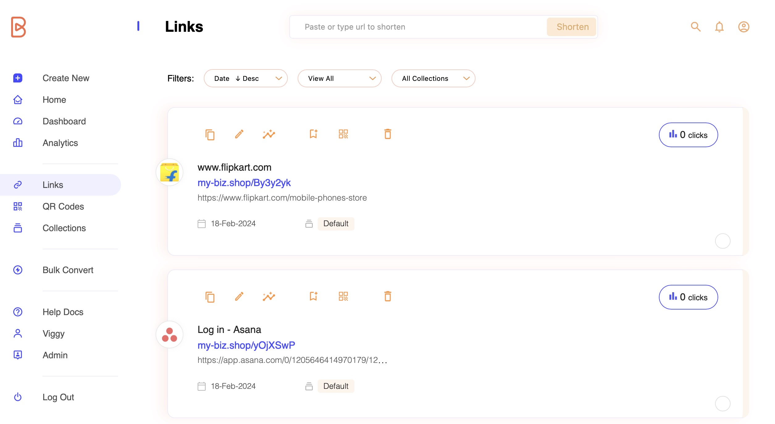 <figure><img src="https://2213782032-files.gitbook.io/~/files/v0/b/gitbook-x-prod.appspot.com/o/spaces%2FcuQD9bKpuaPH1WnZJ9Zl%2Fuploads%2FUUZuIX7Zy4rxw5bavXPy%2FLinks%20page%20after%20converting.jpg?alt=media&#x26;token=a5bef58c-fee3-4d3f-958c-b00c1e6bc92e" alt=""><figcaption><p>Img 6. Links page view. Newly shortened url in the list of urls</p></figcaption></figure>